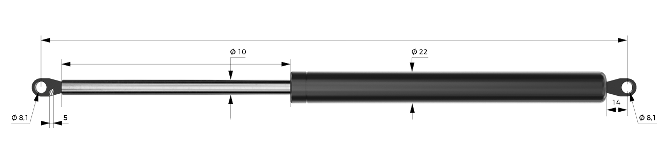 L’ampia gamma dei nostri pistoni a gas industriali a spinta con diametro dello stelo di 10 mm e corpo di 21 mm viene realizzata con occhiello saldato con diametro del foro di 8,1 mm. In combinazione con un’ampia gamma di supporti e accessori, offre una grande versatilità di utilizzo.
